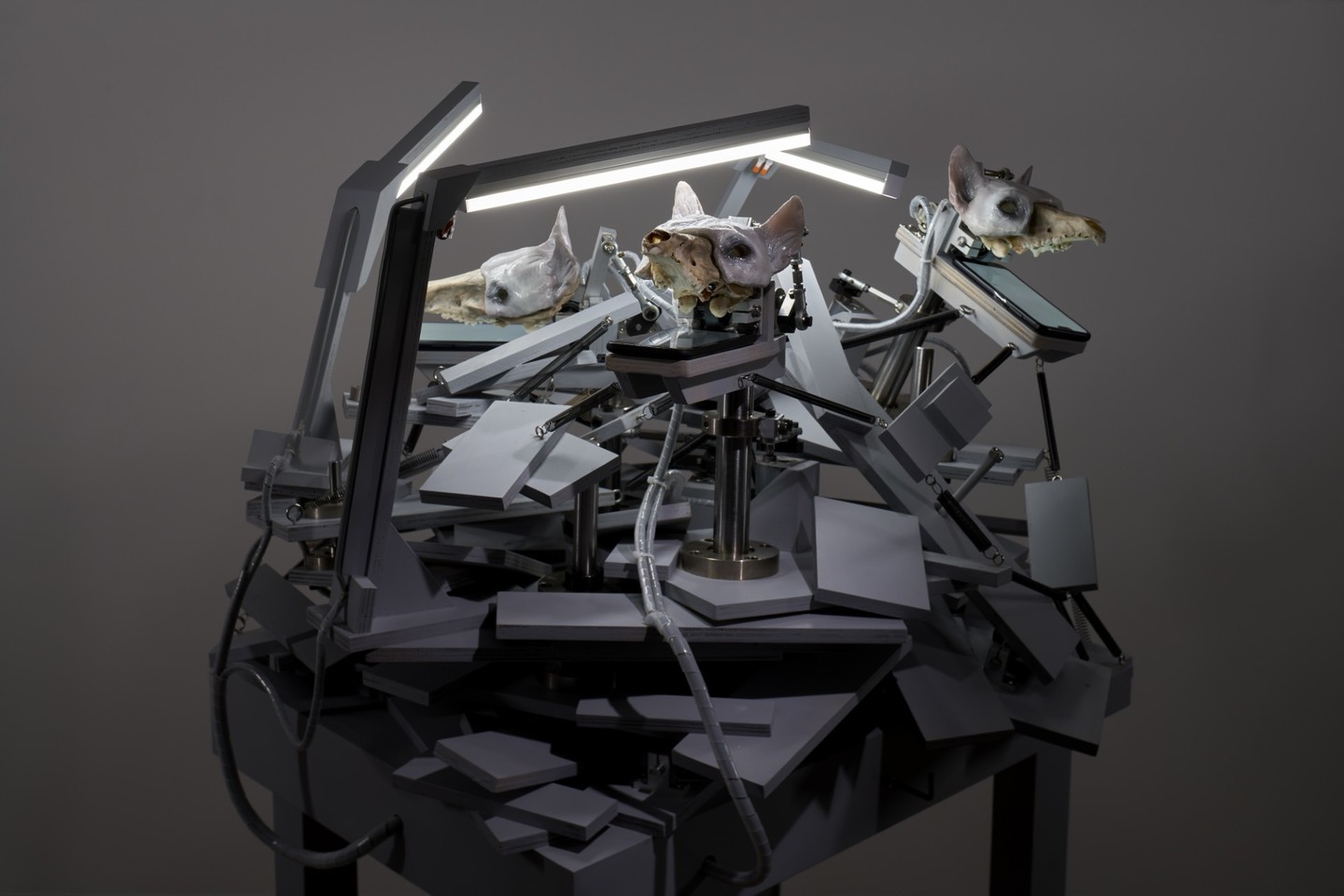 本展では、蜂の巣(主にアシナガバチの巣)を3Dモデリングによって造形し、アルミニウムで出力し、それらを住処を照らすライトとして用いた作品で構成されます。 蜂の巣は、生物が生きるために作り出す最小単位の住処でありながら、外部環境と密接に接続された構造を持ちます。閉塞的でありながら内と外の境界が曖昧なその形態は、生物と環境との関係性を端的に示しています。